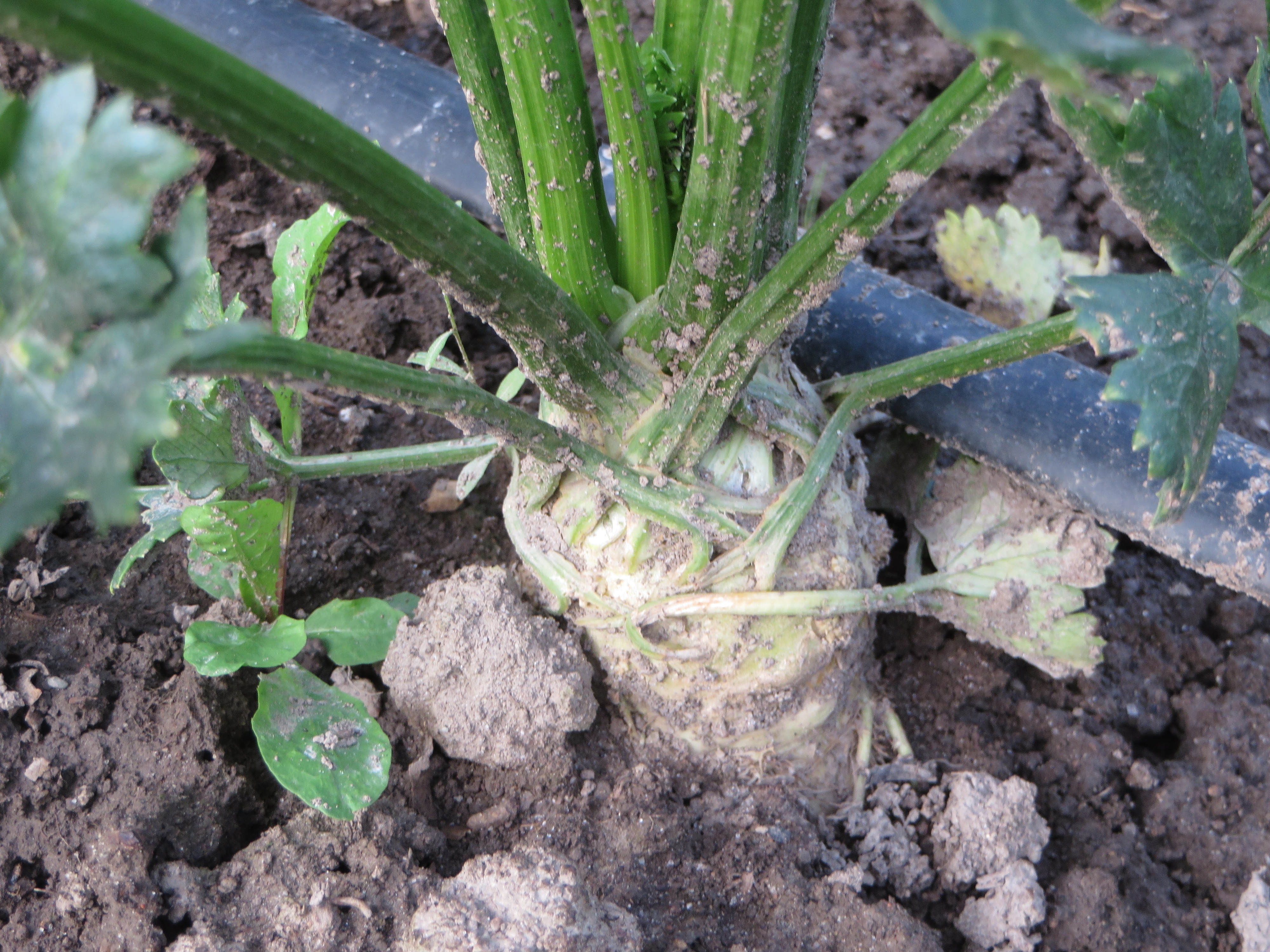 Another root crop that is struggling are the celeriac.  These roots should be about twice as large as this.  It's a slow grower, so there is still time for the root to fill out.