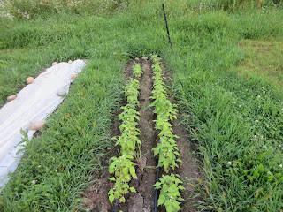 These two bean beds were located fairly close together - the south end of the green beans were within fifteen feet of the wax beans. Both beds received an equal amount of sunlight. The wax beans were in a slightly lower elevation and may have had more access to subsurface water. Both beds were prepared for planting in the same manner - same inputs, aerating and weed control.
